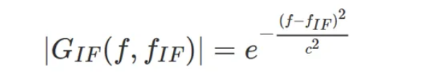 接着,由 IF 滤波器确定分析仪的分辨率。EMI 标准(如 CISPR 16)对 IF 滤波器的传递增益有具体的要求。在仿真中,IF 滤波器通常可以被建模为带通高斯滤波器,其中传递增益可以通过公式(1)来计算: