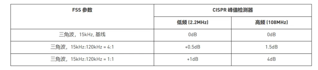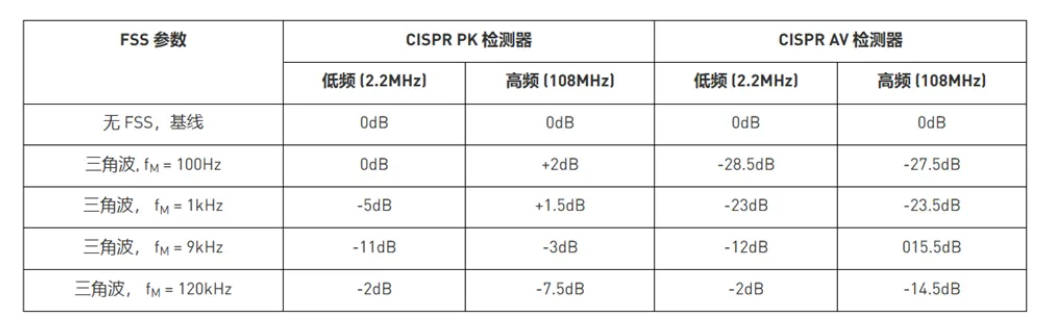 与单调制 FSS 相比,双调制技术有助于改善高频带的 EMI 性能,而低频 EMI 性能有所下降。