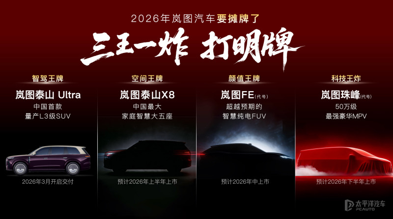 定位“庭院级大五座SUV”的岚图泰山X8,车长5200mm,计划上半年上市。