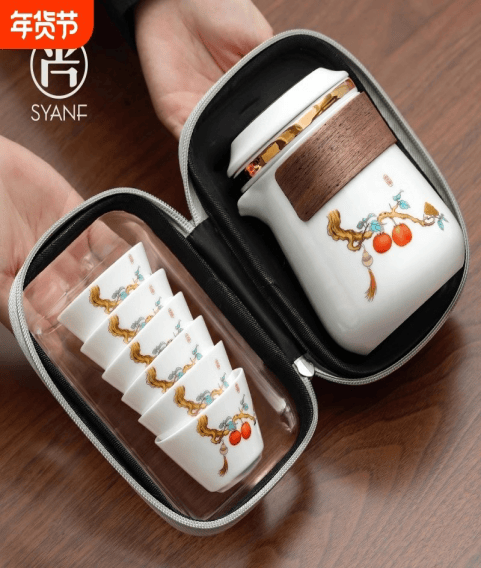便携茶具,防烫手柄设计,一壶+六杯,在踏青、出门远游的过程中也可与三五好友一起品茗。