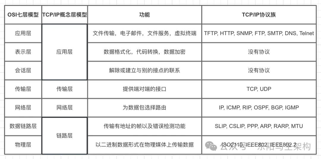 OSI采用了分层的结构化技术,共分七层,分别是:应用层、表示层、会话层、传输层、网络层、数据链路层、物理层。