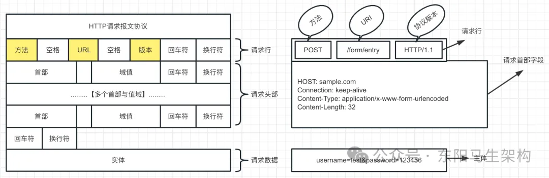 请求报文的首部内容由以下数据组成:请求行——包含用于请求的方法、请求URI和HTTP版本,请求头——包含表示请求的各种条件和属性的各类首部。比如通用首部、请求首部、实体首部以及RFC里未定义的首部如Cookie等。