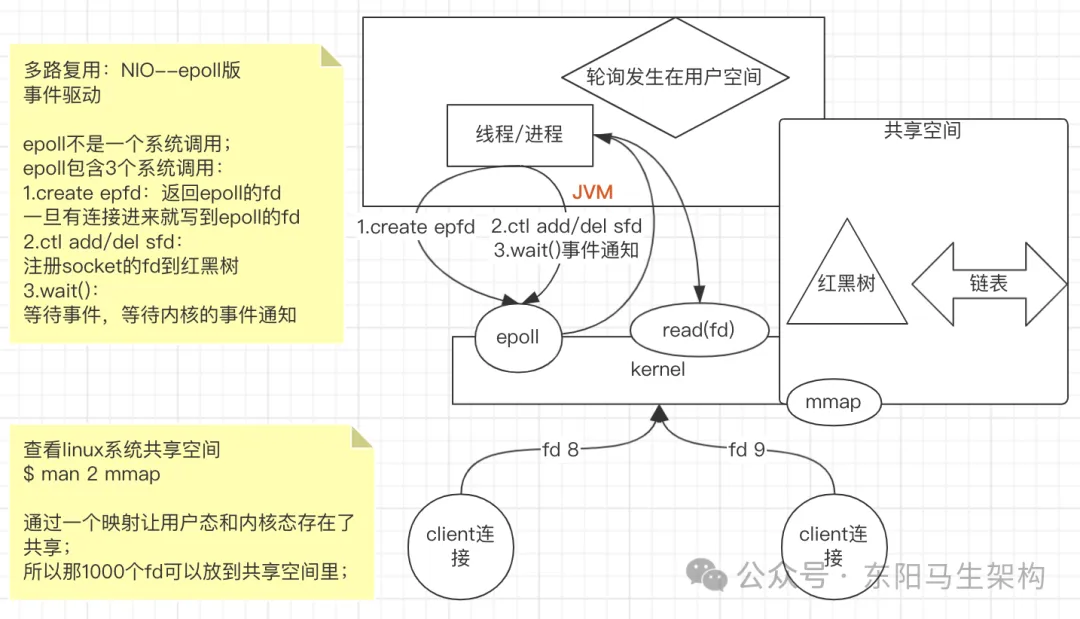 多路复用IO需要用到两个系统调用:一个是select/epoll查询调用,一个是IO的读取调用。负责select/epoll查询调用的线程:需要不断进行select/epoll轮询,查找出可以进行IO操作的连接。